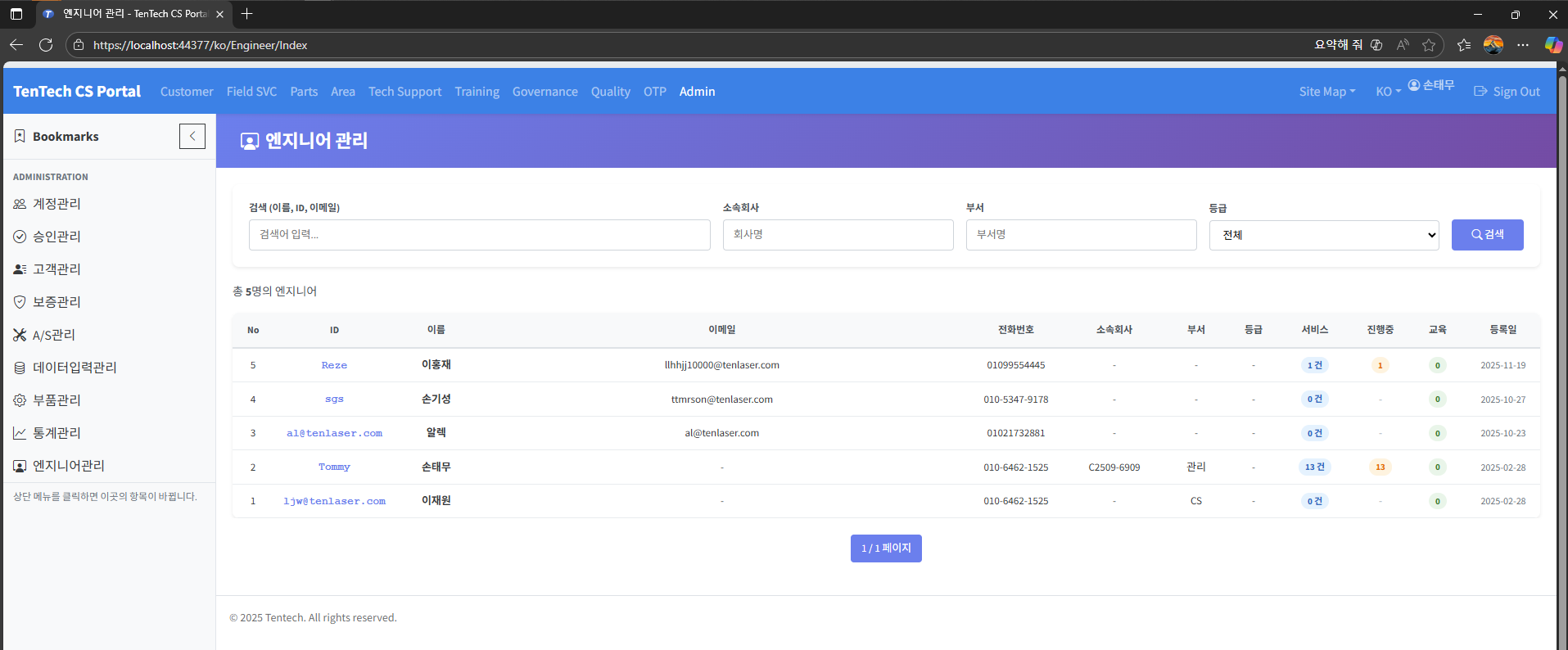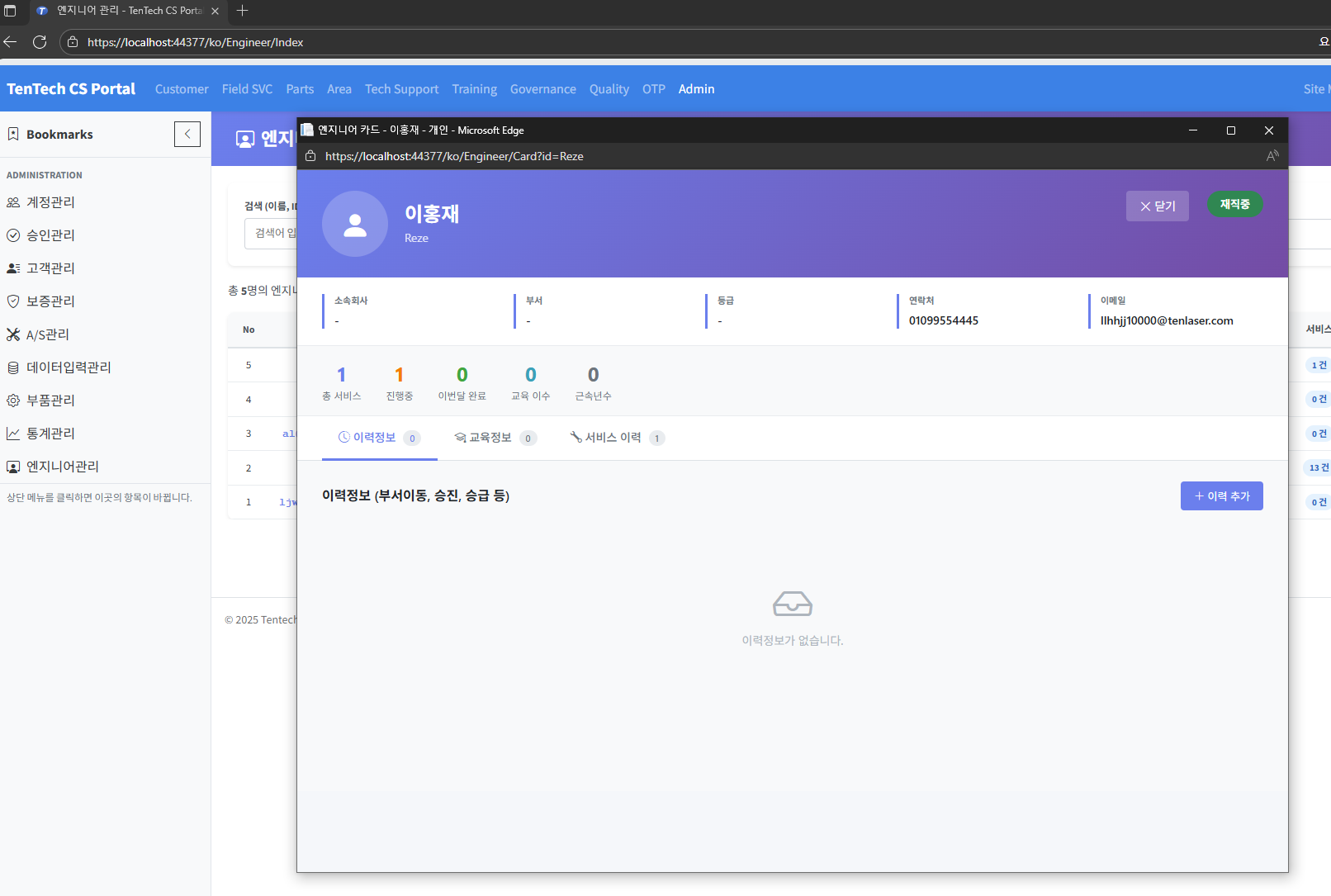 엔지니어 관리 페이지와 엔지니어 카드 제작 완료